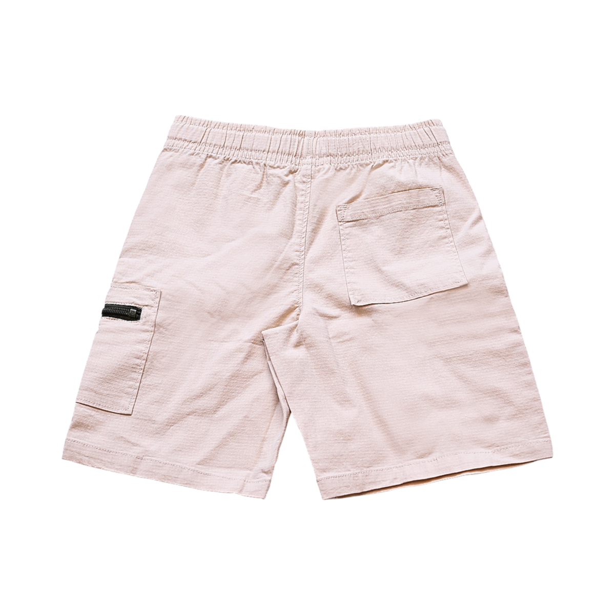 Excellent worn condition. Pull-on style. Elastic waistband. Adjustable drawstring. 2 side pockets, back patch pocket, side cargo zip pocket.
