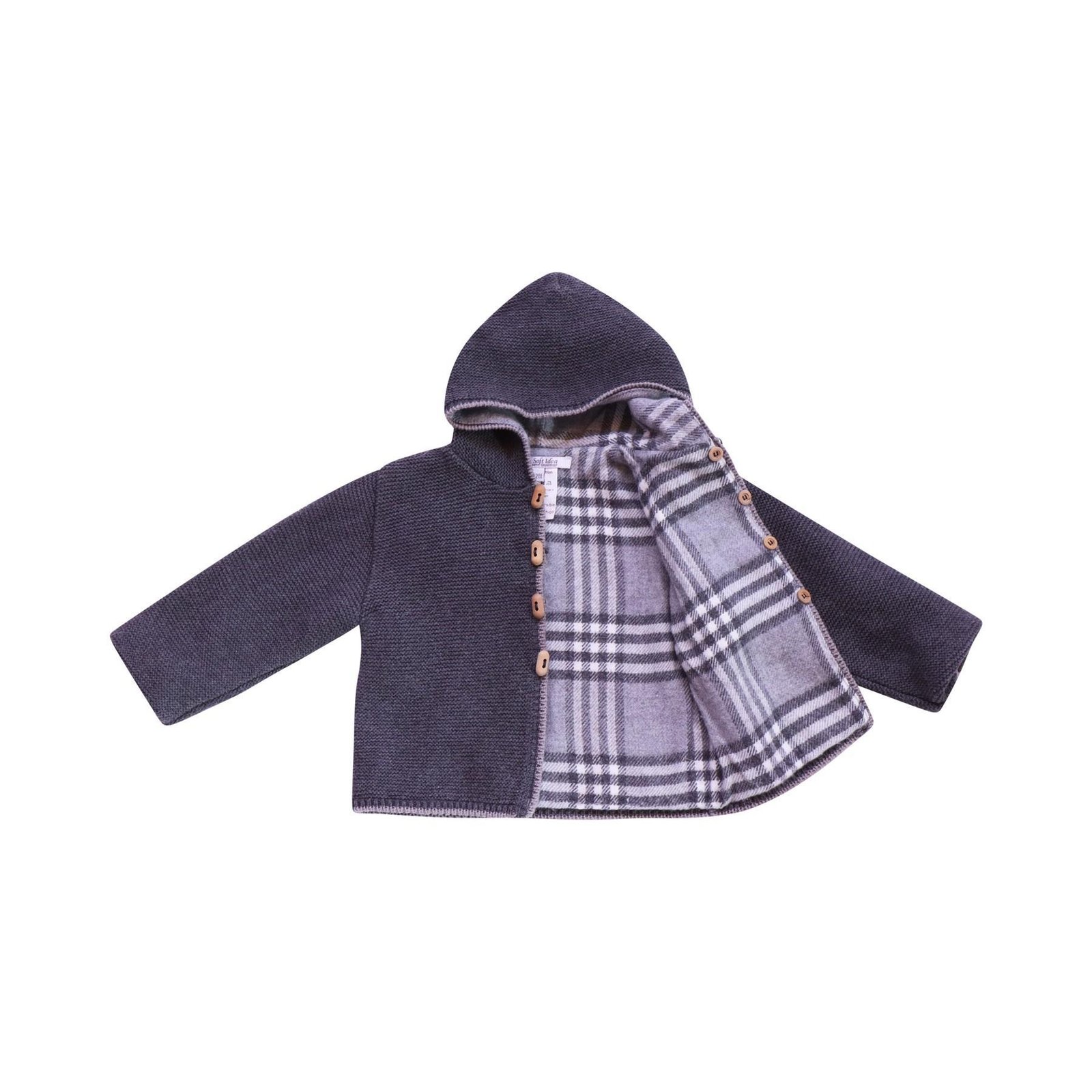 Reversible Plaid Flannel Lined Hooded Sweater | Charcoal