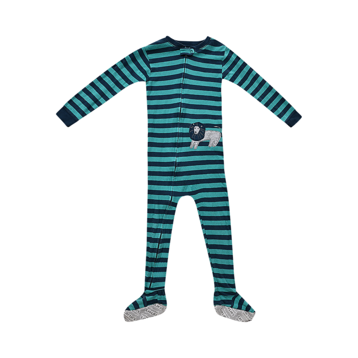 Very good worn condition. Full front zipper. Lion applique detail. Built-in footies with grips.