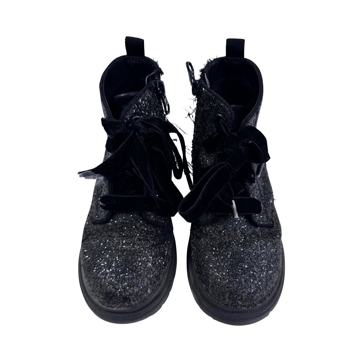 Good worn condition. Lace-up. Size zipper. Visible fraying on the laces.