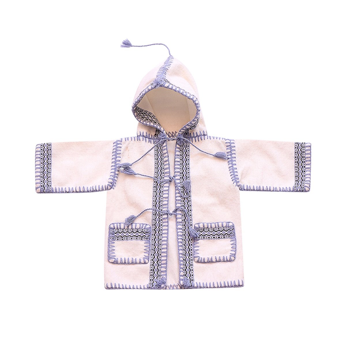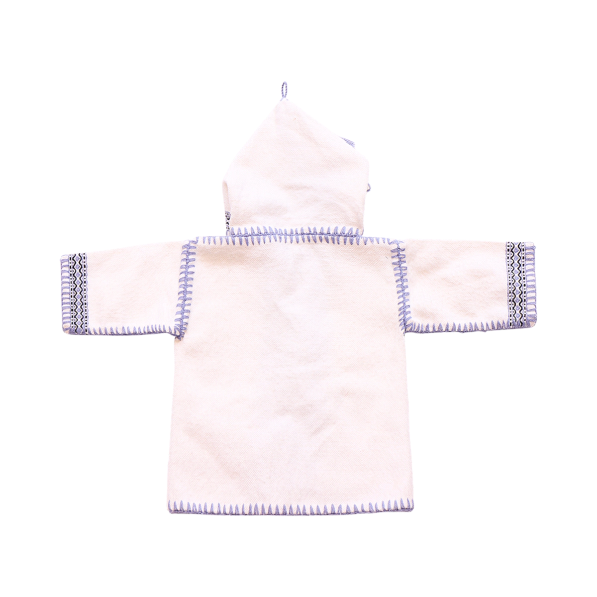 Good worn condition. Small stain on right shoulder. Tassel tie closure. Front pockets. Handmade.