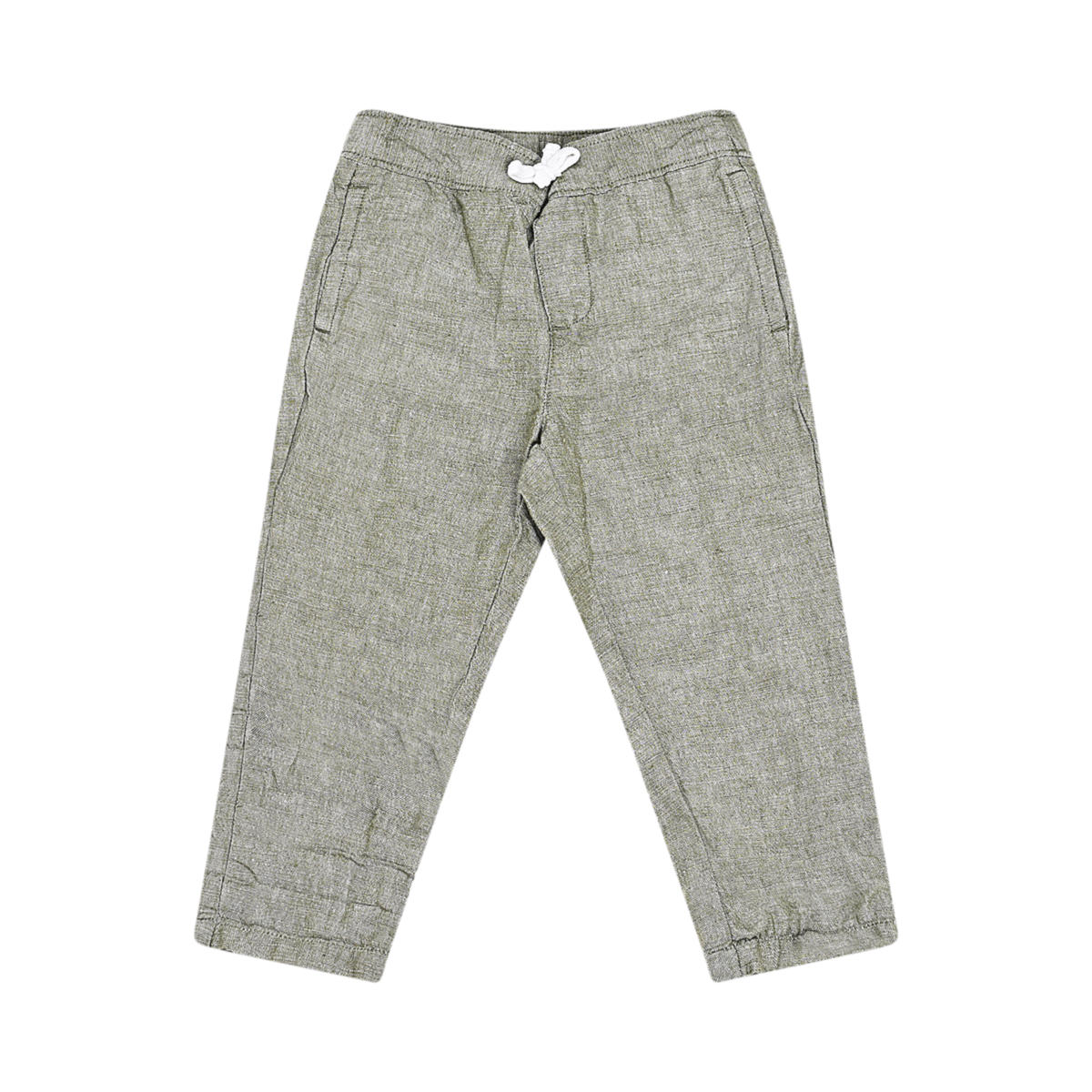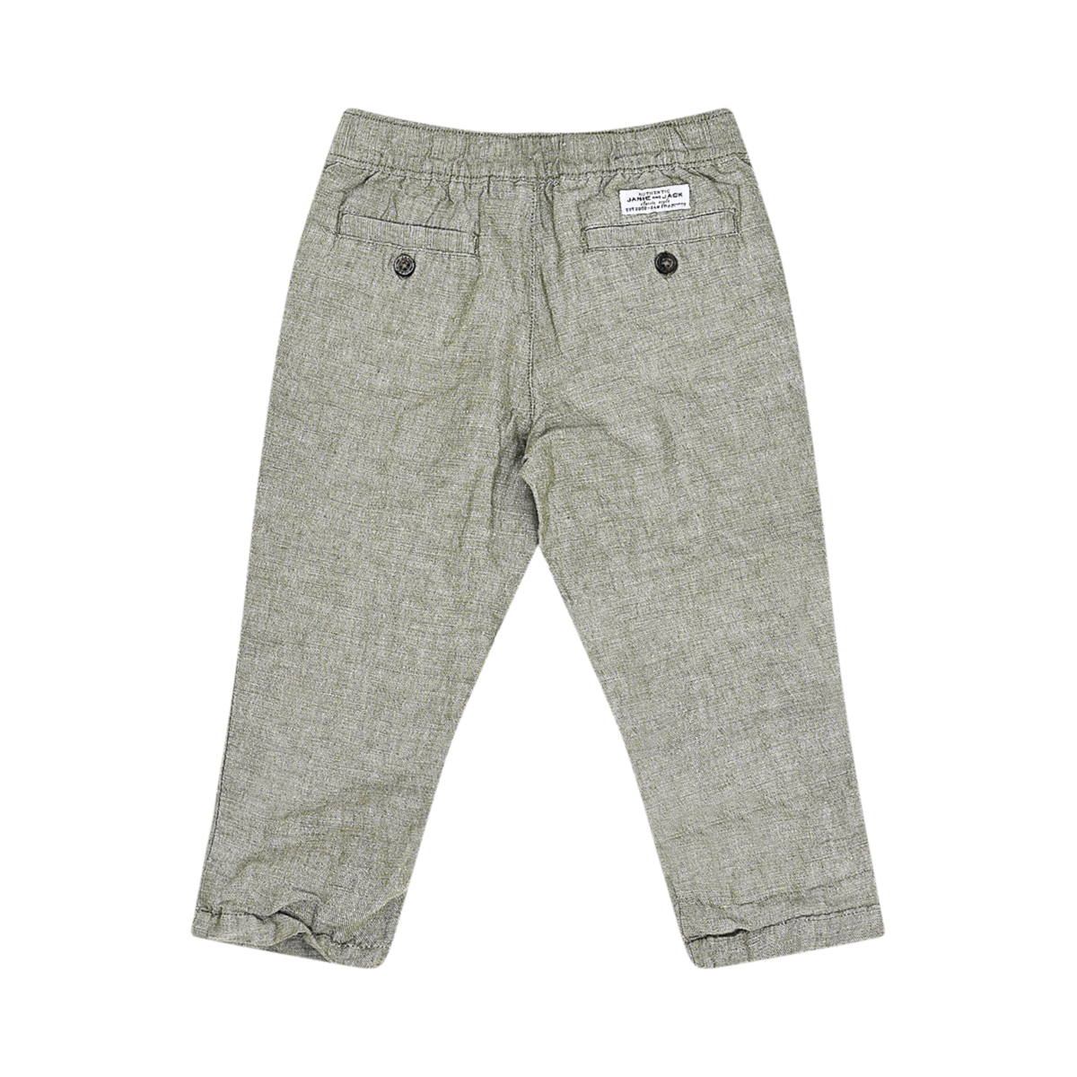 Very good worn condition. Elastic waistband. Front slash pockets. Back buttoned welt pockets.