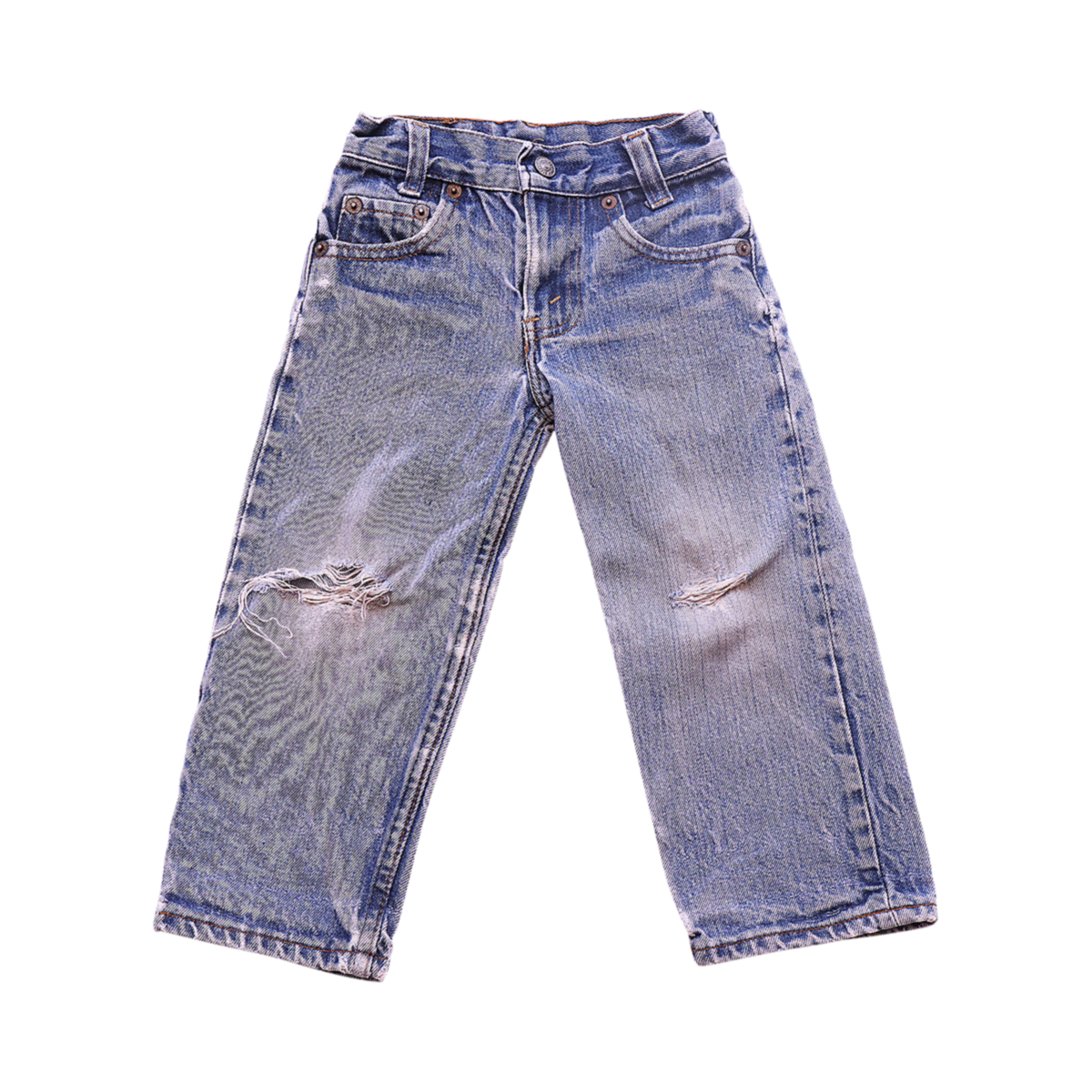 Fair worn Condition. Snap and zipper closure. Distressed with holes in knees.