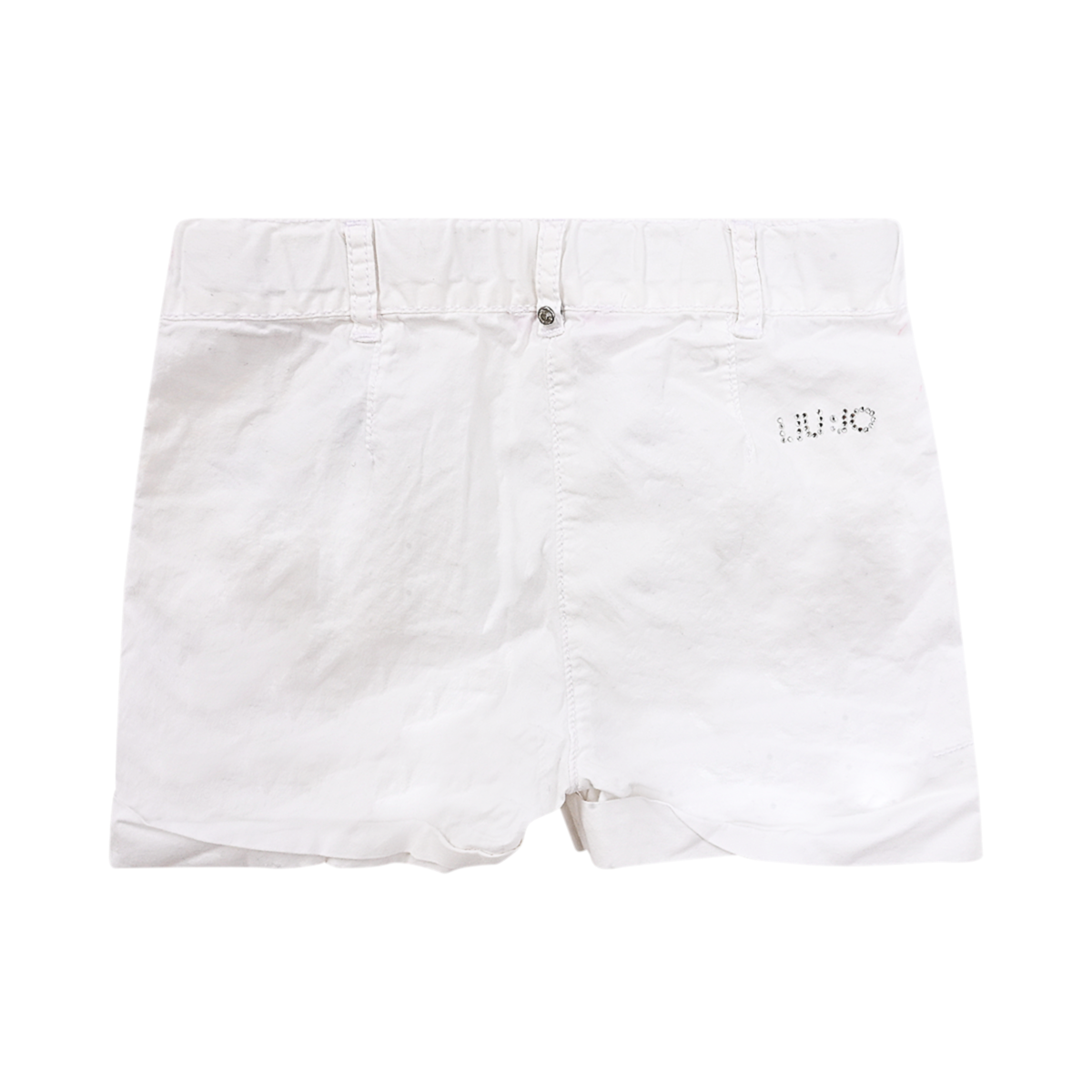 Good worn condition. Front button and zipper closure. Belt loops. Rhinestone logo accent on back. Lightweight.