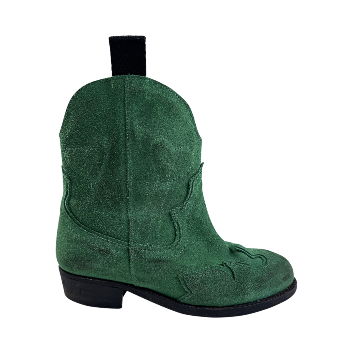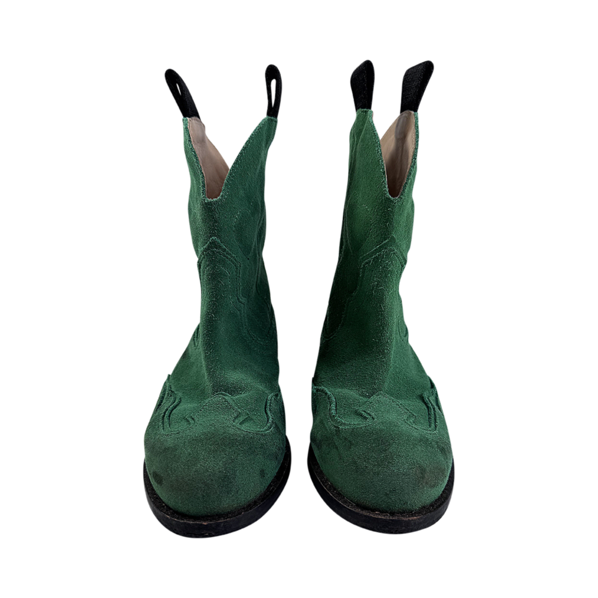 Good worn condition. Pull on tabs. Stitched toe detailing. Low stacked heel. Classic western boot shape.