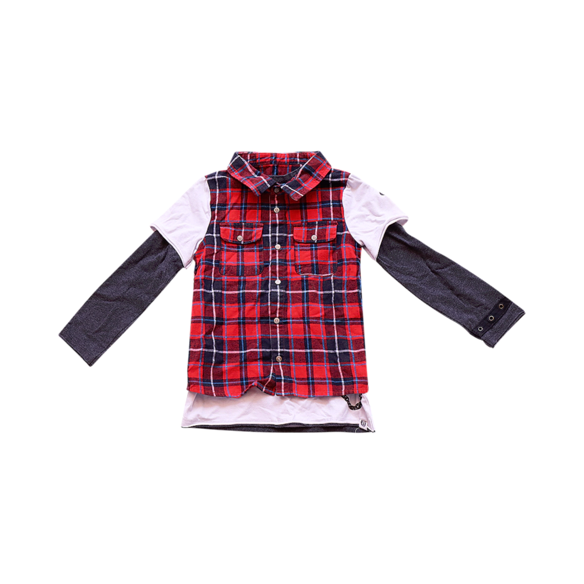 Body: 95% Cotton 5% Spandex Plaid: 100% Cottom