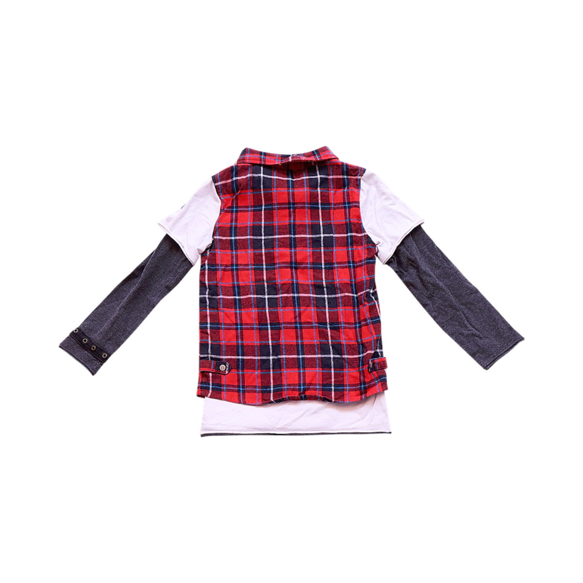 Good worn condition. Faux long sleeve and short sleeve layer. Grommet detail.