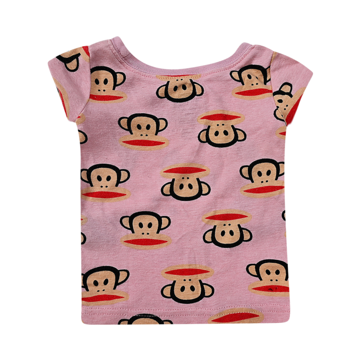 Good worn condition. Slight pilling. Allover monkey face graphic print. Short sleeve crewneck t-shirt.