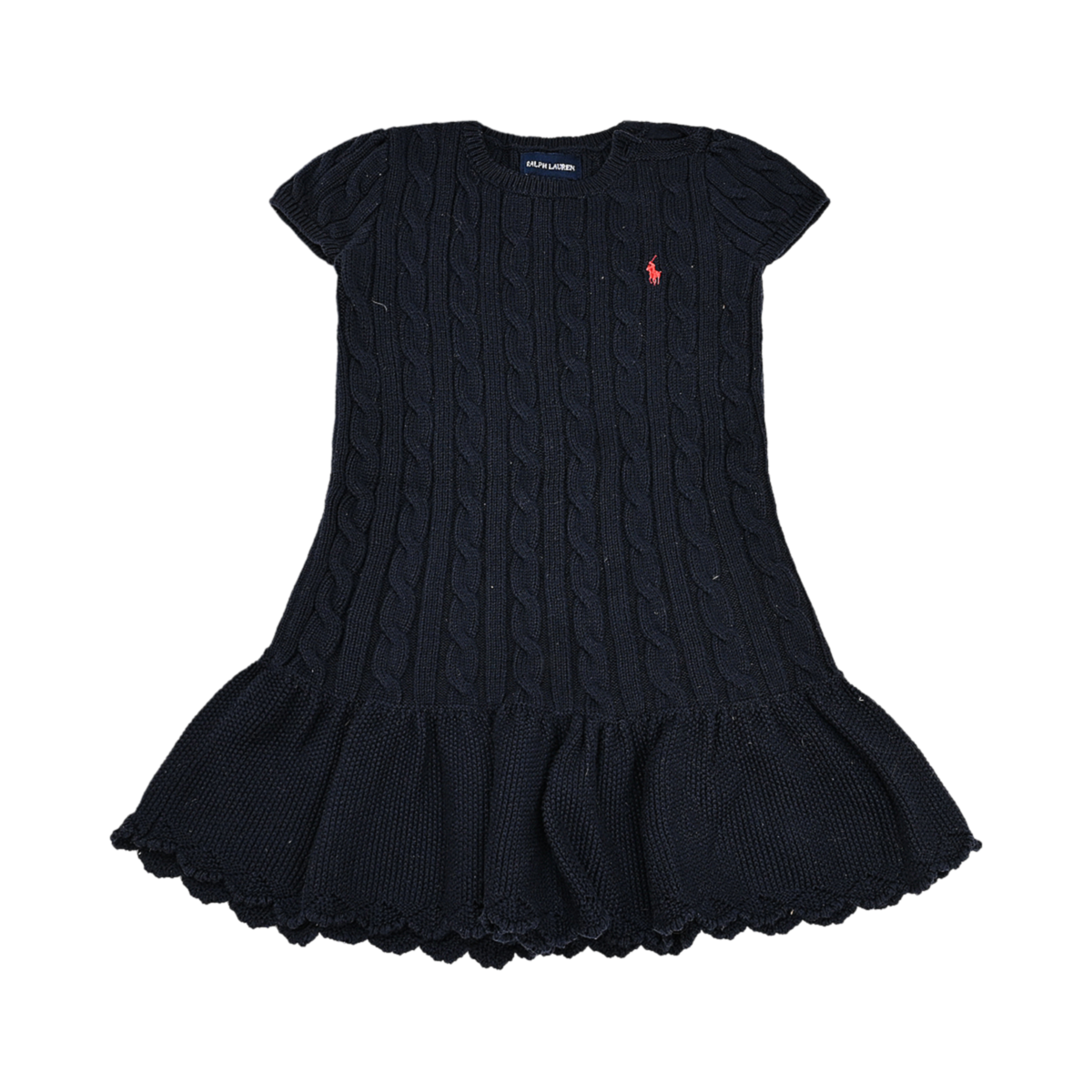 Excellent worn condition. Signature embroidered logo on chest. Flared ruffle hem.