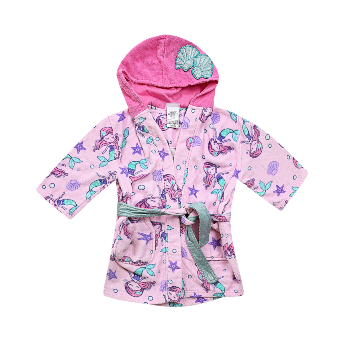 Good worn condition. Attatched hood. Front pockets. Adjustable tie belt at waist.