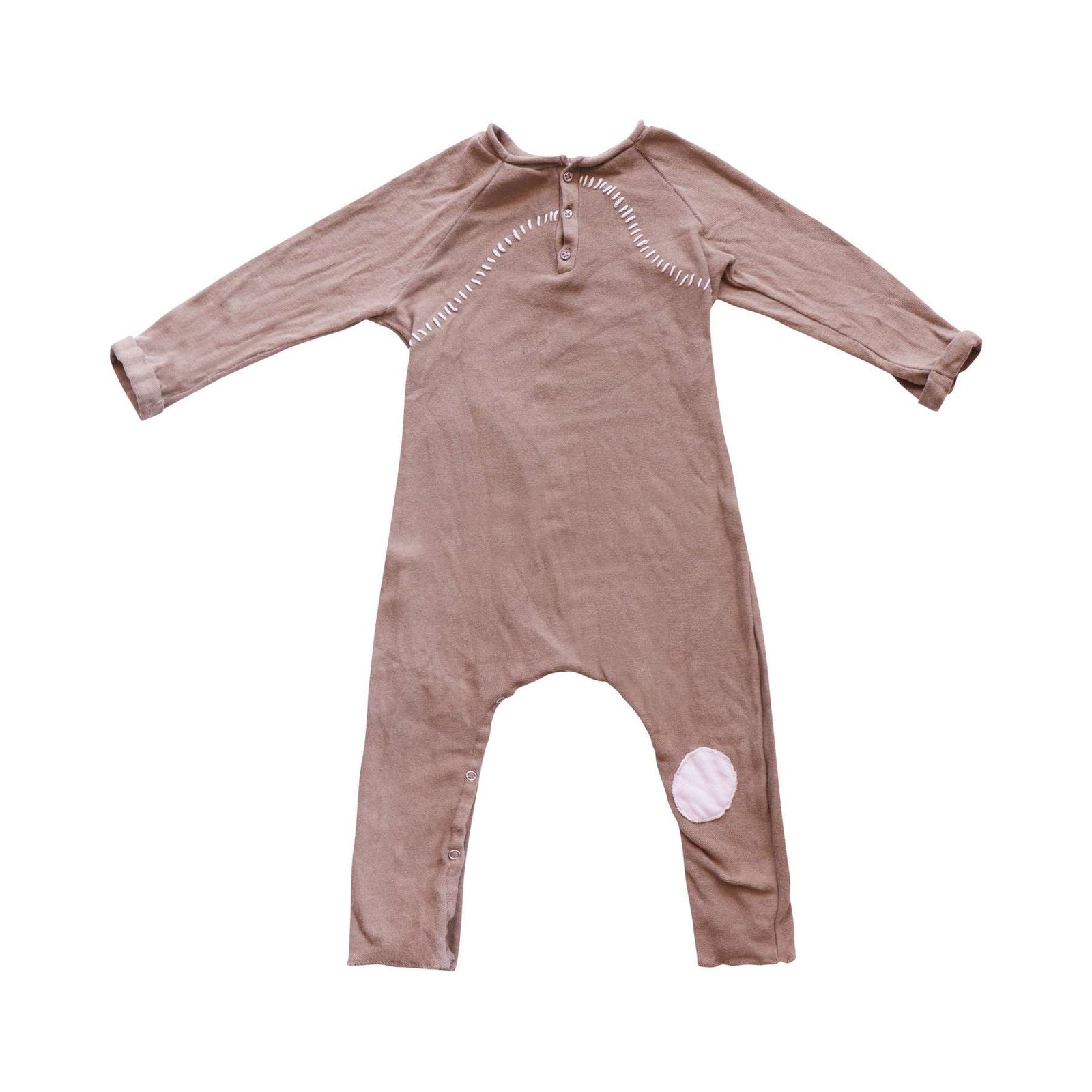 Good worn condition. Stitch and patch detail. Snap closure at legs.