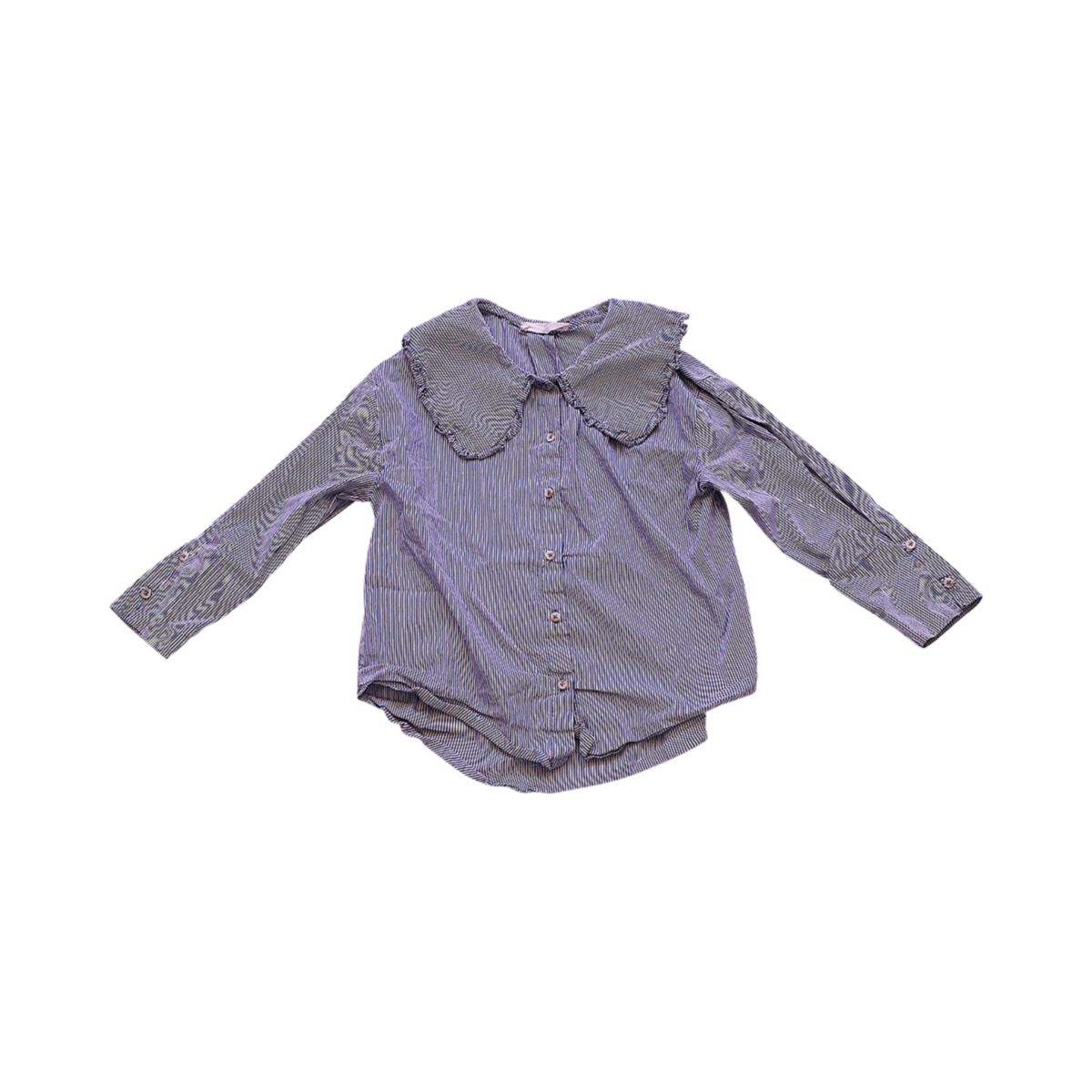 Mini-Stripe Peter Pan Collar Shirt | Blue Multi